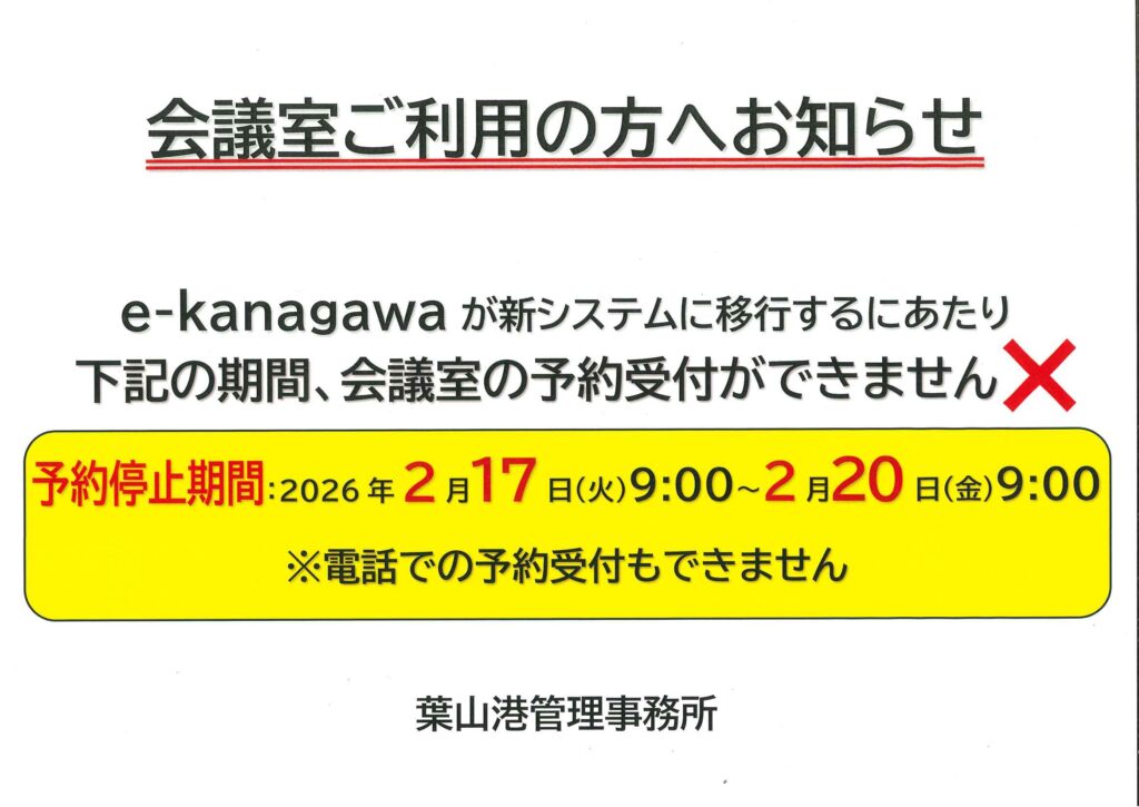 e-kanagawaが新システムに移行するにあたり、下記の期間は、会議室の予約受付ができません。
